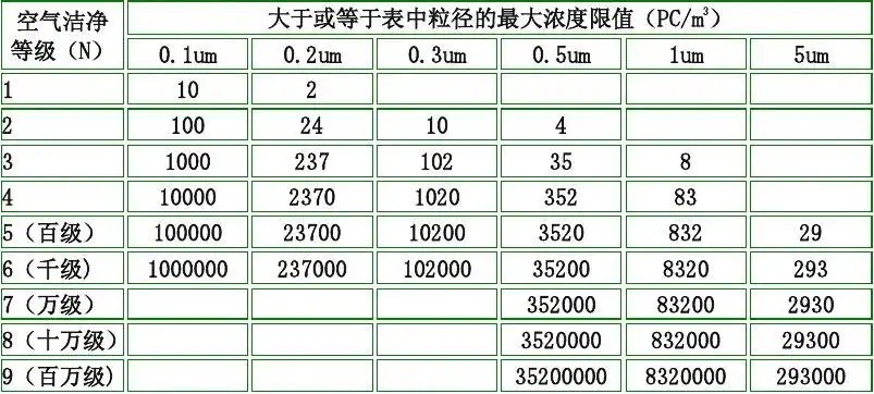 潔凈級別:百級、千級、10萬級