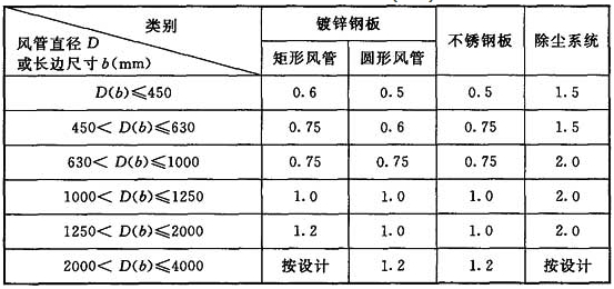 風(fēng)管系統(tǒng)中,在某一靜壓下通過(guò)風(fēng)管、附件及其接口,在單位時(shí)間內(nèi)泄漏或滲入的空氣體積量。